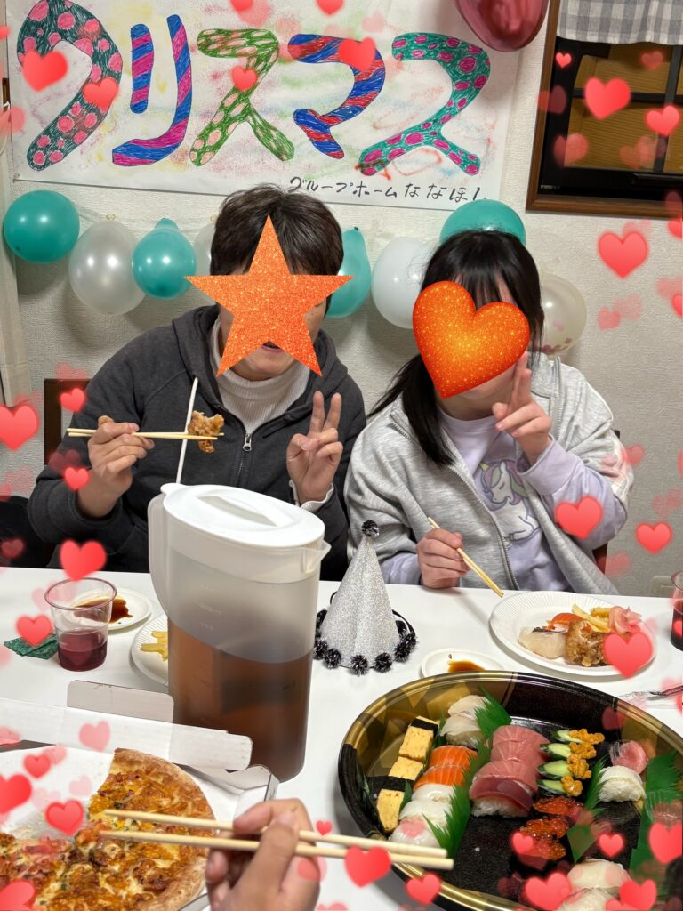 GHななほし✨クリスマス会開催🎄⭐️🎄⭐️ 投稿公開日:2025年12月25日 投稿カテゴリー:未分類 昨日グループホームななほしのクリスマス会を開催しました🎵 皆さん 一杯食べて、飲んで、歌って、踊って❣️ 楽しい時間を過ごしました⭐️ 職員さんもノリノリで踊っていただき最高でした‼️ 参加できなかった利用者様も来年は参加できるといいなぁ🥰 おすすめ グループホームななほしⅢ号棟🏠入居者募集‼️ 2024年12月28日 利用者さまとタコパ🐙 2023年12月20日 新年明けましておめでとうございます🎍 2024年1月7日